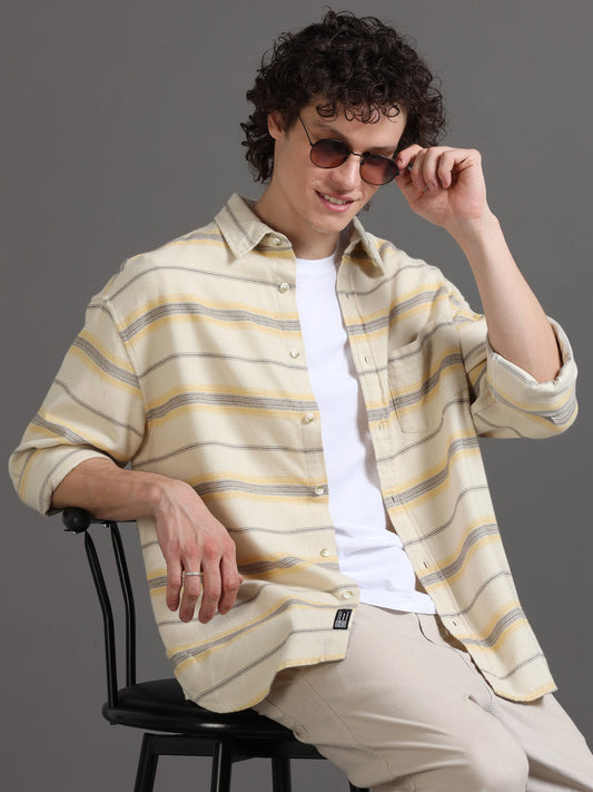 Modern Relaxed Fit Stripes - Platinum and White