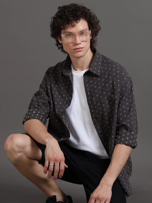 Resort Luxe Oversize Shirt - Grey and Olive