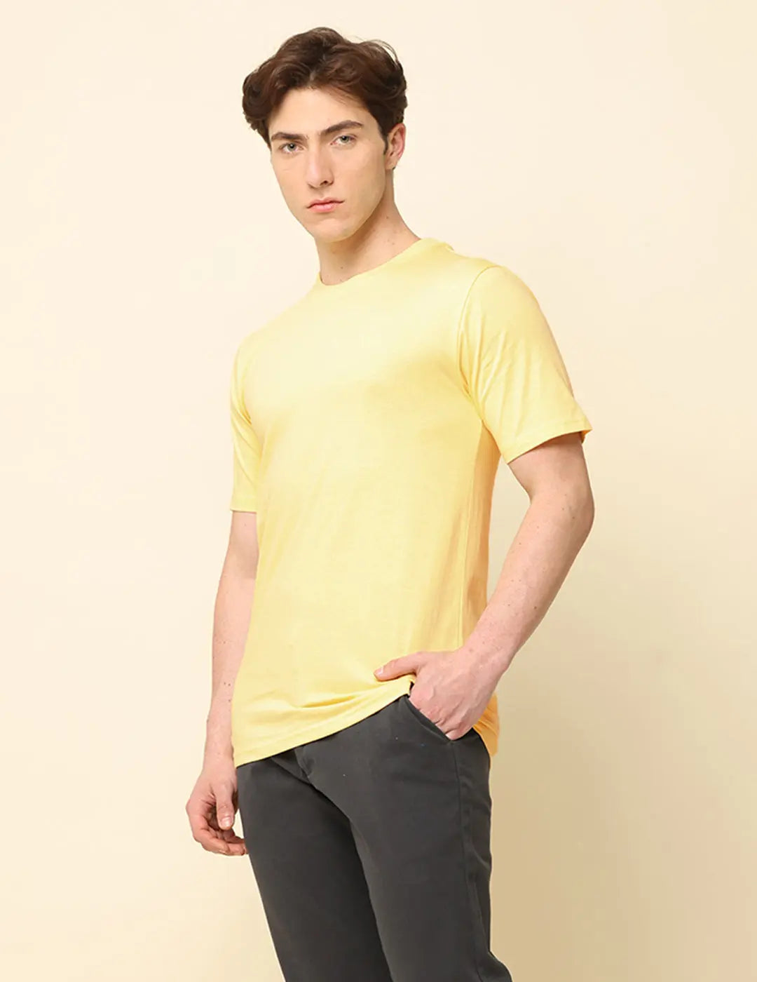 Men Solid Regular Fit T-Shirt - Light Yellow